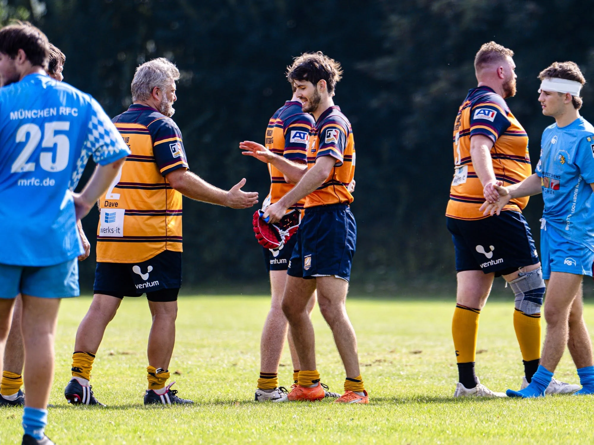 A pre season game with local rivals MRFC in 2024. Shaking hands with team mates and opposition - something that is core to rugby