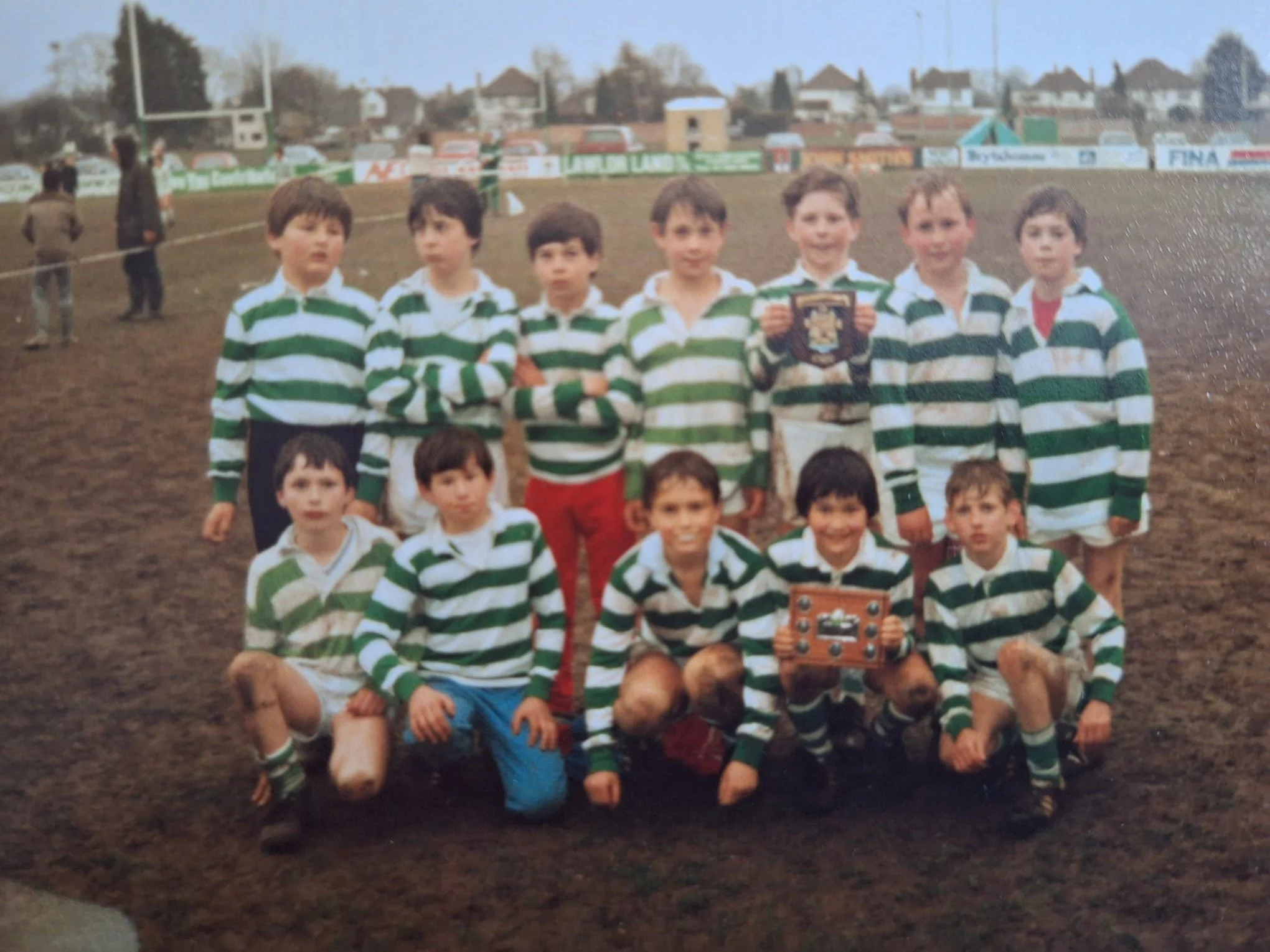 My first experience of rugby: being taken to play mini rugby at Guildford and Godalming, combined with playing for Glebelands secondary school in an unbeaten year at age 12.